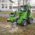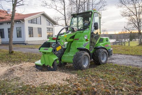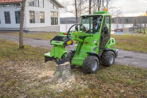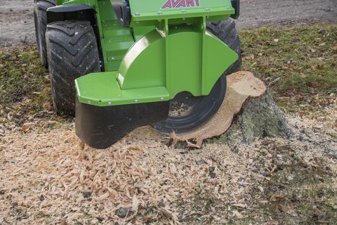 Die leistungsstarke Avant Baumstumpffräse entfernt Baumstümpfe schnell und präzise. Die seitlich montierte Trennscheibe sorgt für beste Sicht auf den Arbeitsbereich und wirft Holzabfälle sicher zur Seite – geschützt durch eine Gummischutzhülle.